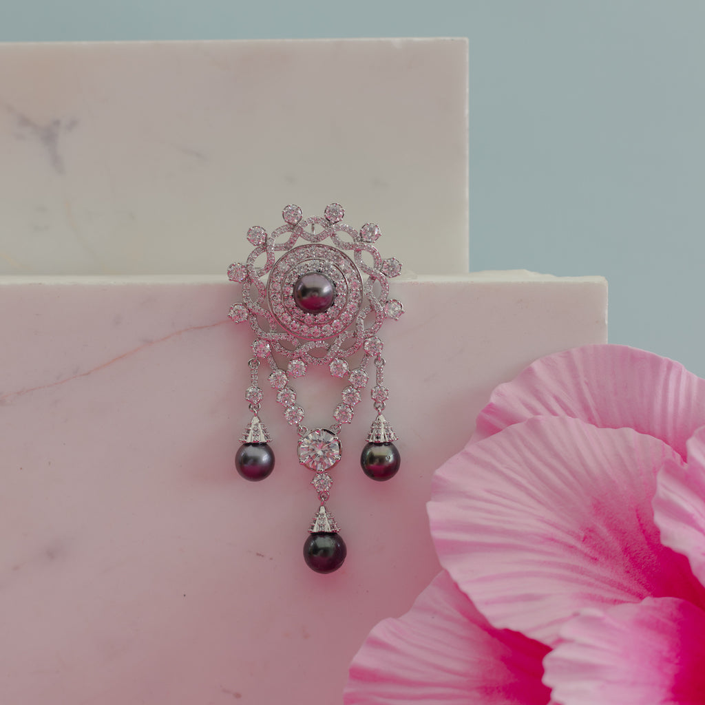 Elevate your ensemble with the captivating beauty of our Amelia Brooch. Thoughtfully crafted, combining the natural allure of lustrous Tahitian pearls with the radiant shimmer of polished silver detailing. The contrast between the deep, oceanic tones of the pearls and the brilliant sparkle of silver creates a look that is both modern and timeless.