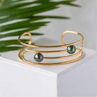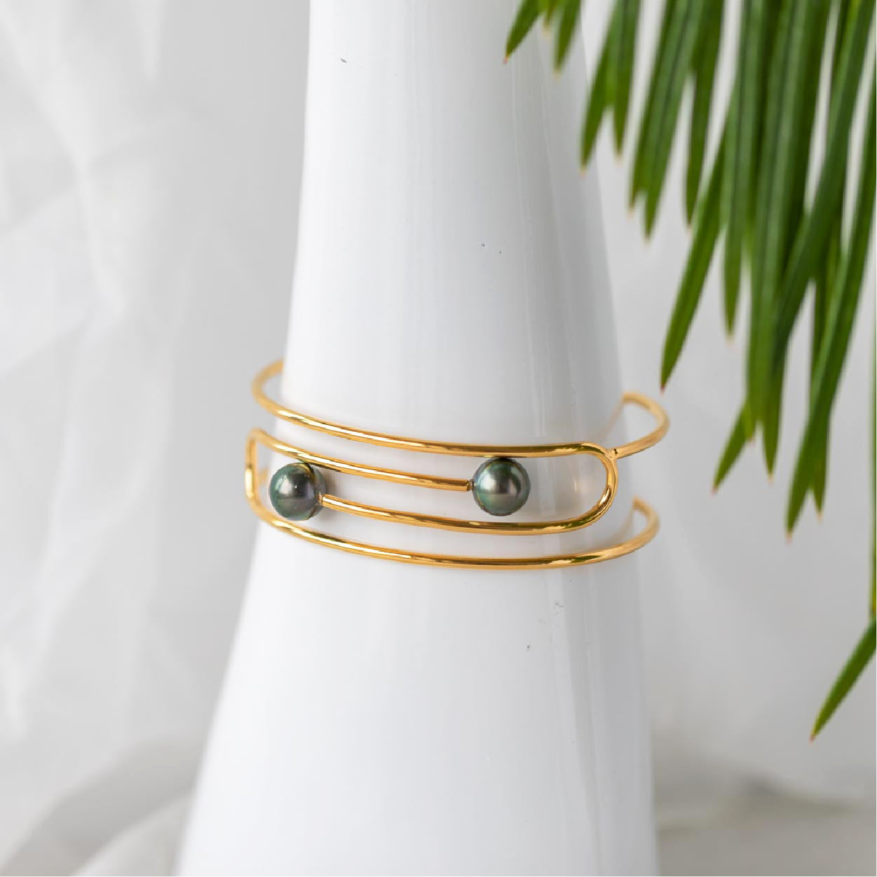 The cuff design is easy to slip on and off while the two pearls at each end add a pop of green to this everyday bangle.