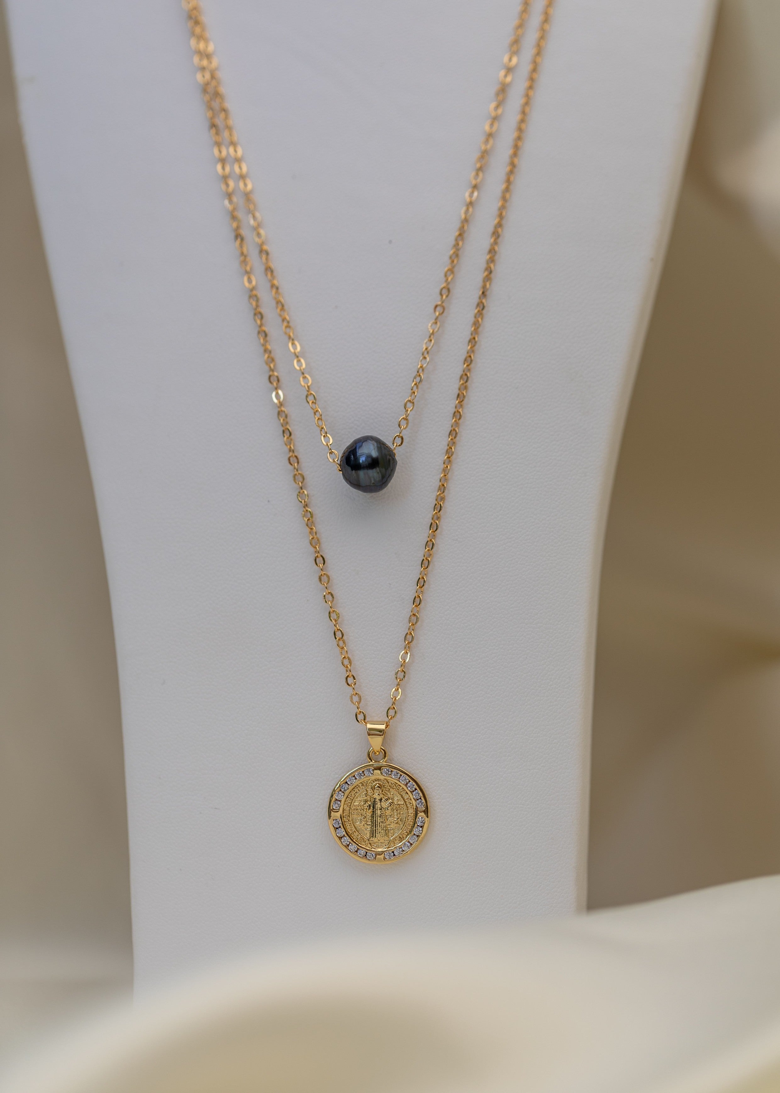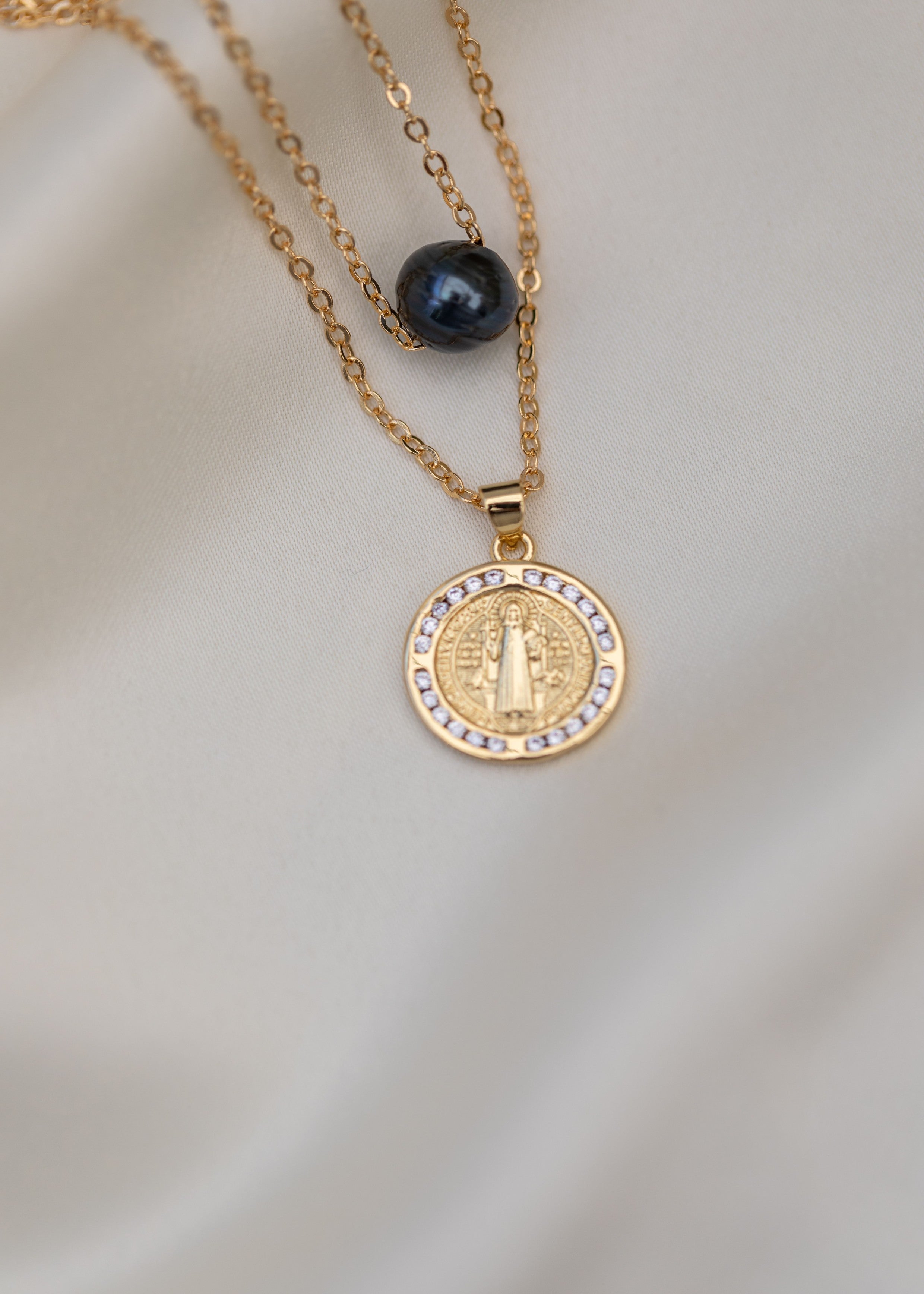 Our Saint Benedict Pearl Necklace is a perfect blend of spirituality and elegance.