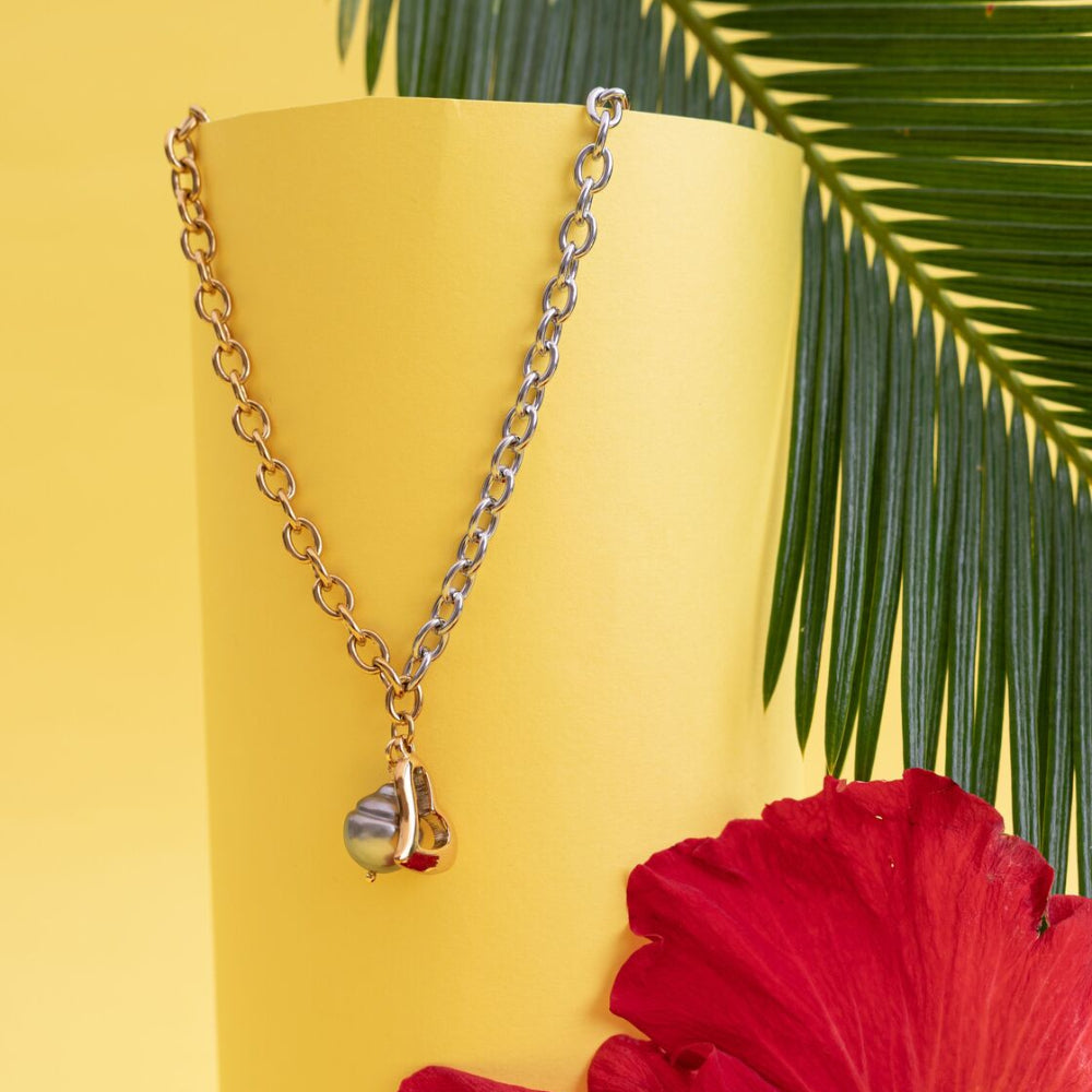 This striking necklace and bracelet set blends the best of both worlds—gold and silver—making it the perfect piece for those who just can’t choose. Featuring chunky, two-tone links and glowing Tahitian pearls that sway with every movement, it's finished with a beautiful heart charm that adds just the right touch of romance.