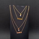 Handcrafted with a luminous 9mm Tahitian Pearl, this layered design pairs warm gold tones with the natural beauty of the Pacific. Each bar pendant reflects light beautifully, while the delicate chain drapes with easy sophistication. It’s refined yet relaxed — the perfect blend of modern and timeless.