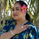 Perfect for tropical vacations, weddings, or adding an elegant, carefree touch to a casual look. These beautiful dangling earrings feature intricate frangipani motifs, evoking the gentle elegance of island flowers in bloom.