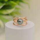 Wrap style around your finger with a ring accented with Tahitian pearls.