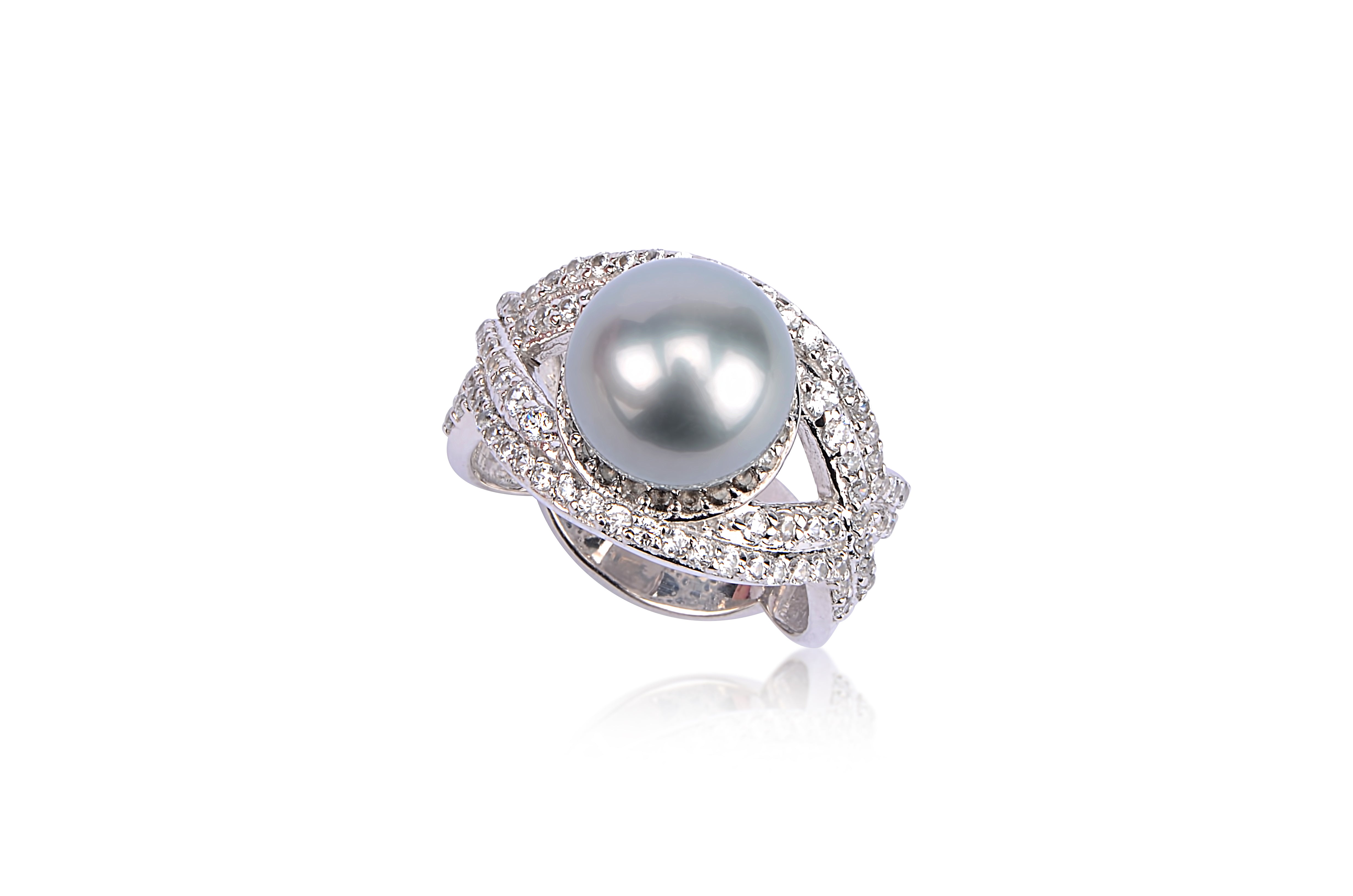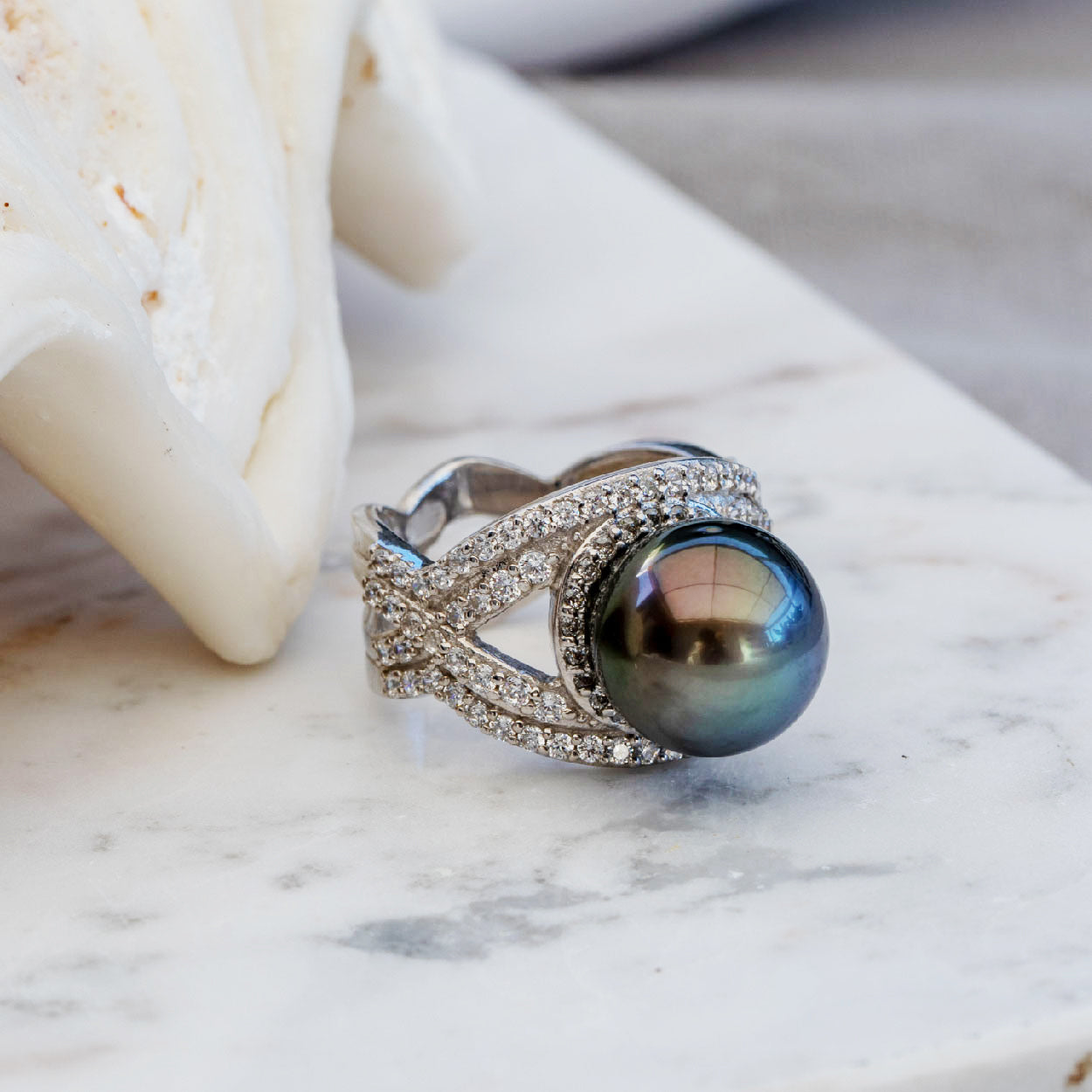 This Tahitian pearl ring and all-around cubic zirconias offer the perfect everyday bling accessory. Our Patricia ring is also a lovely engagement ring for the romantic bride.