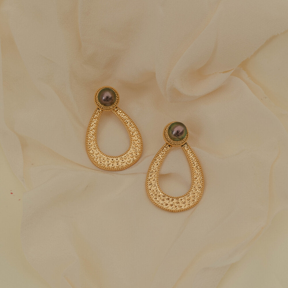 Inspired by the gentle lap of waves against the shore, the Lana earrings feature graceful curves of precious metal that cradle luminous Tahitian pearls. These statement pieces capture the moment when sunlight dances across the morning tide—elegant yet effortless, just like island life. Each earring's sculptural wave design frames its pearl like a treasured shell discovered at dawn, making these pieces perfect for both everyday wear and special occasions that call for a touch of Pacific elegance.