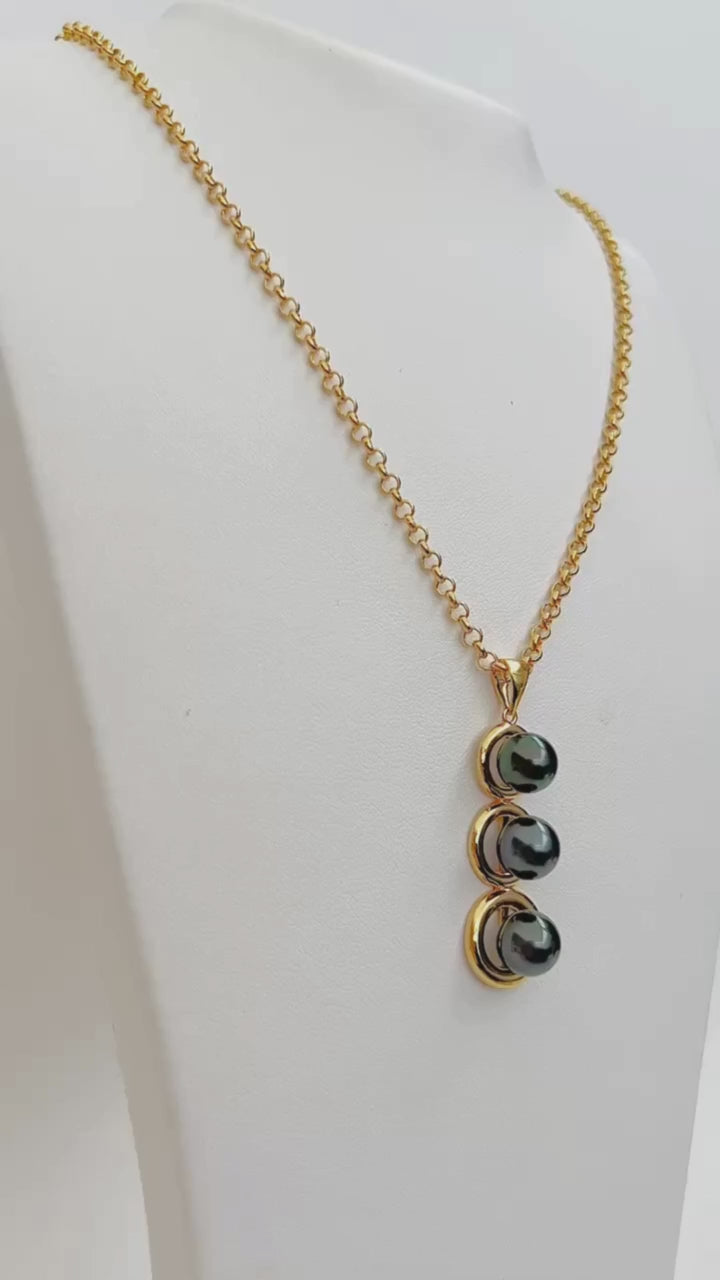 This bold piece features three Tahitian pearls in gold-filled settings arranged in graduating sizes and strung from a delicate chain. It'll instantly elevate white t-shirt and jeans outfits and look right at home paired with a party dress.