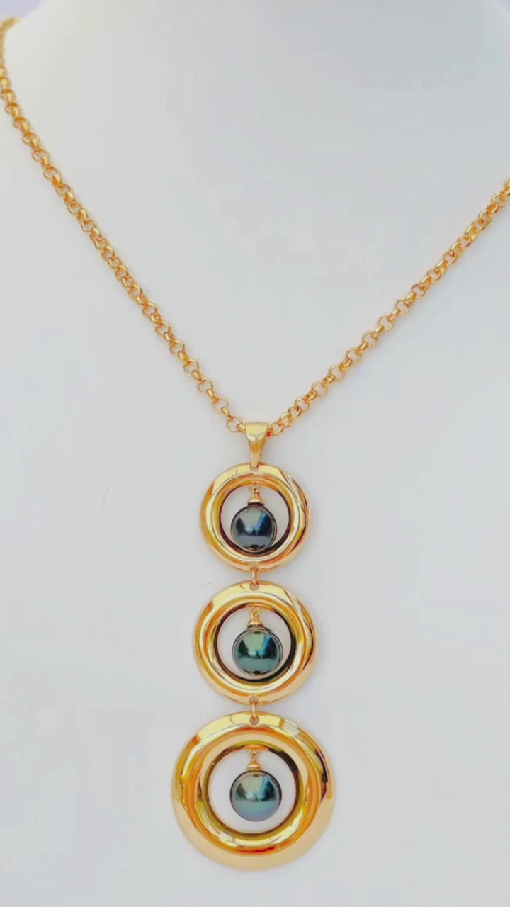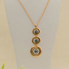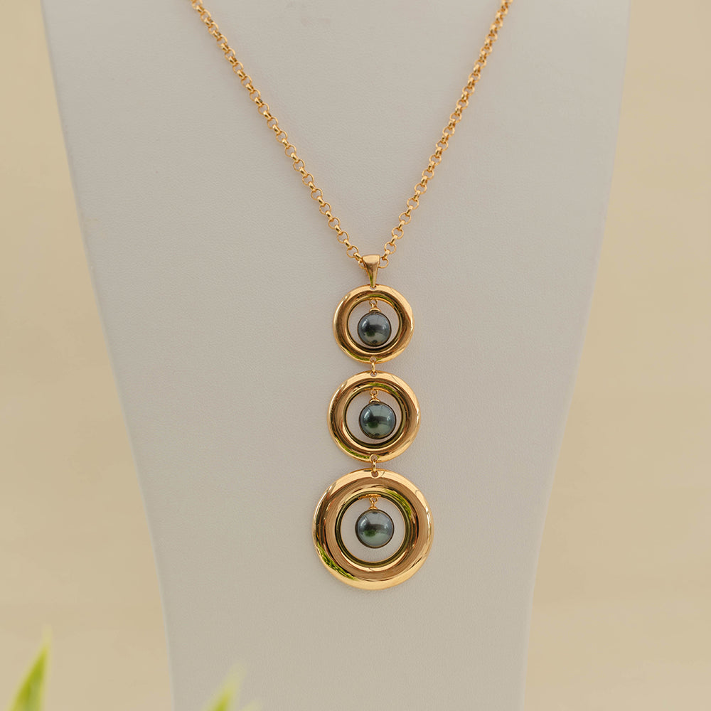 The Veronika Necklace is an unmatched statement maker. Three iridescent pearls are nestled in stacked circular pendants threaded on a delicate chain. They embody the spirit of our warrior ancestors and inspire you to stand strong no matter what life throws at you.