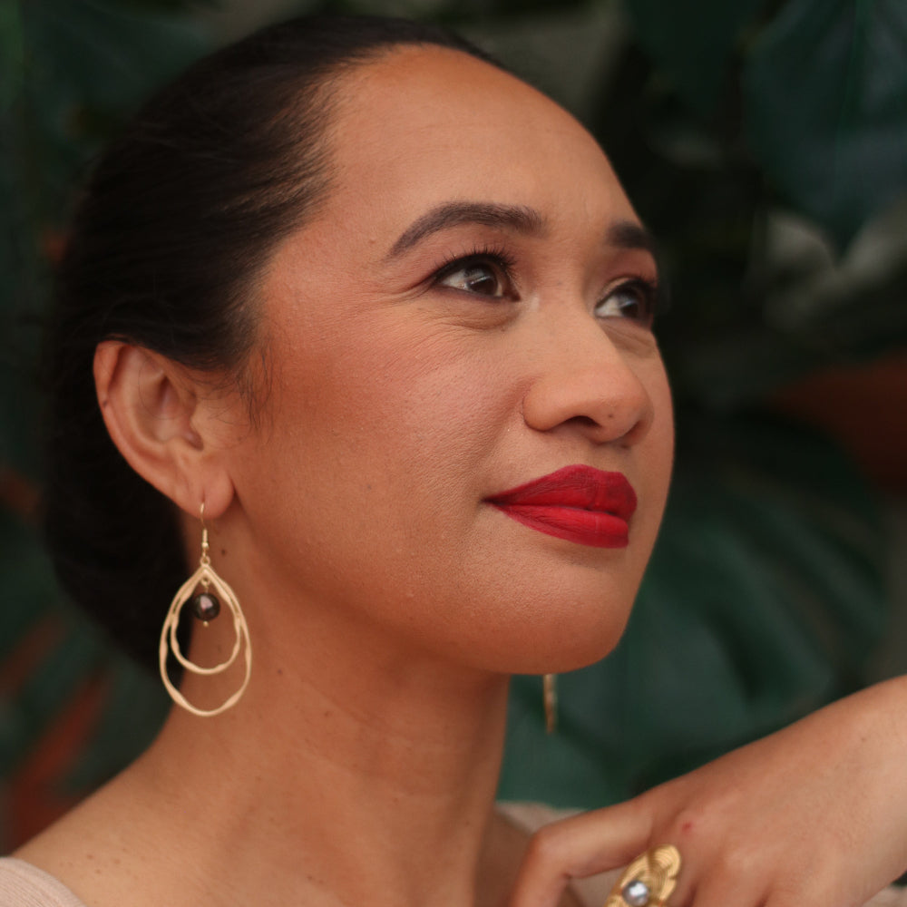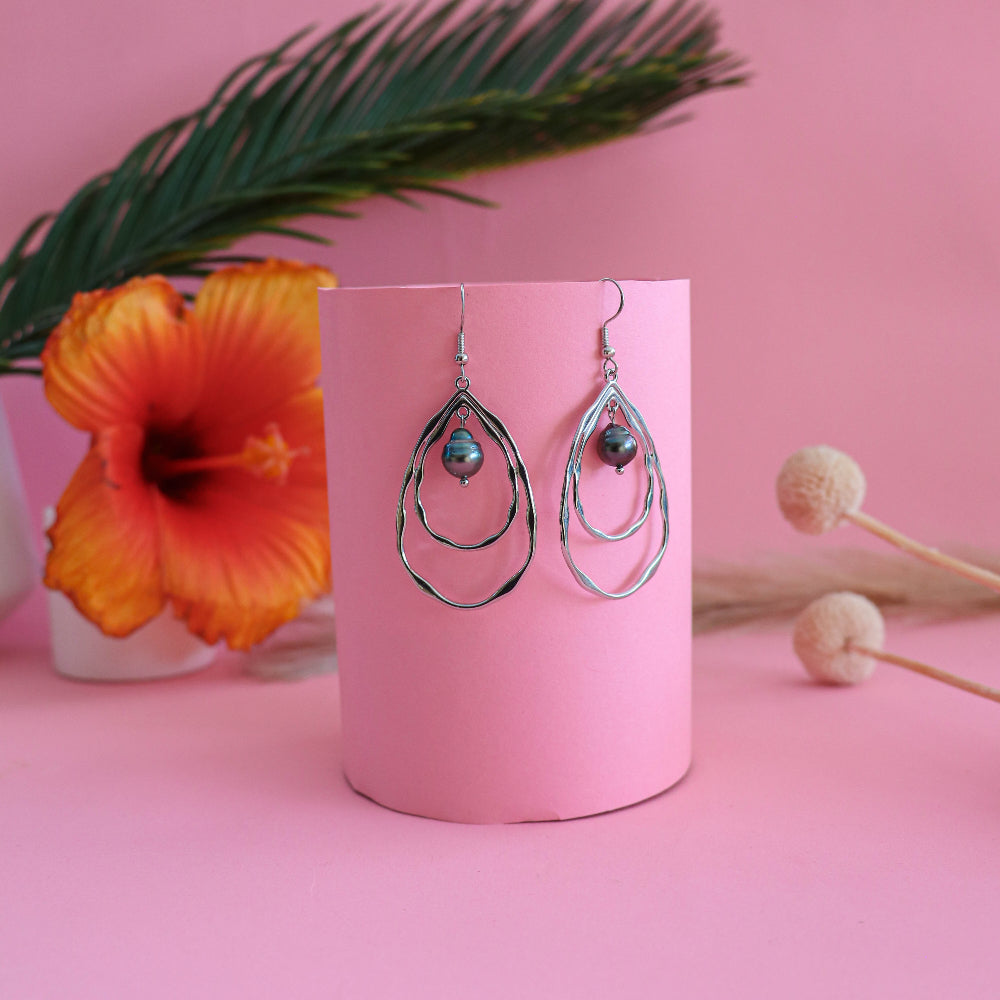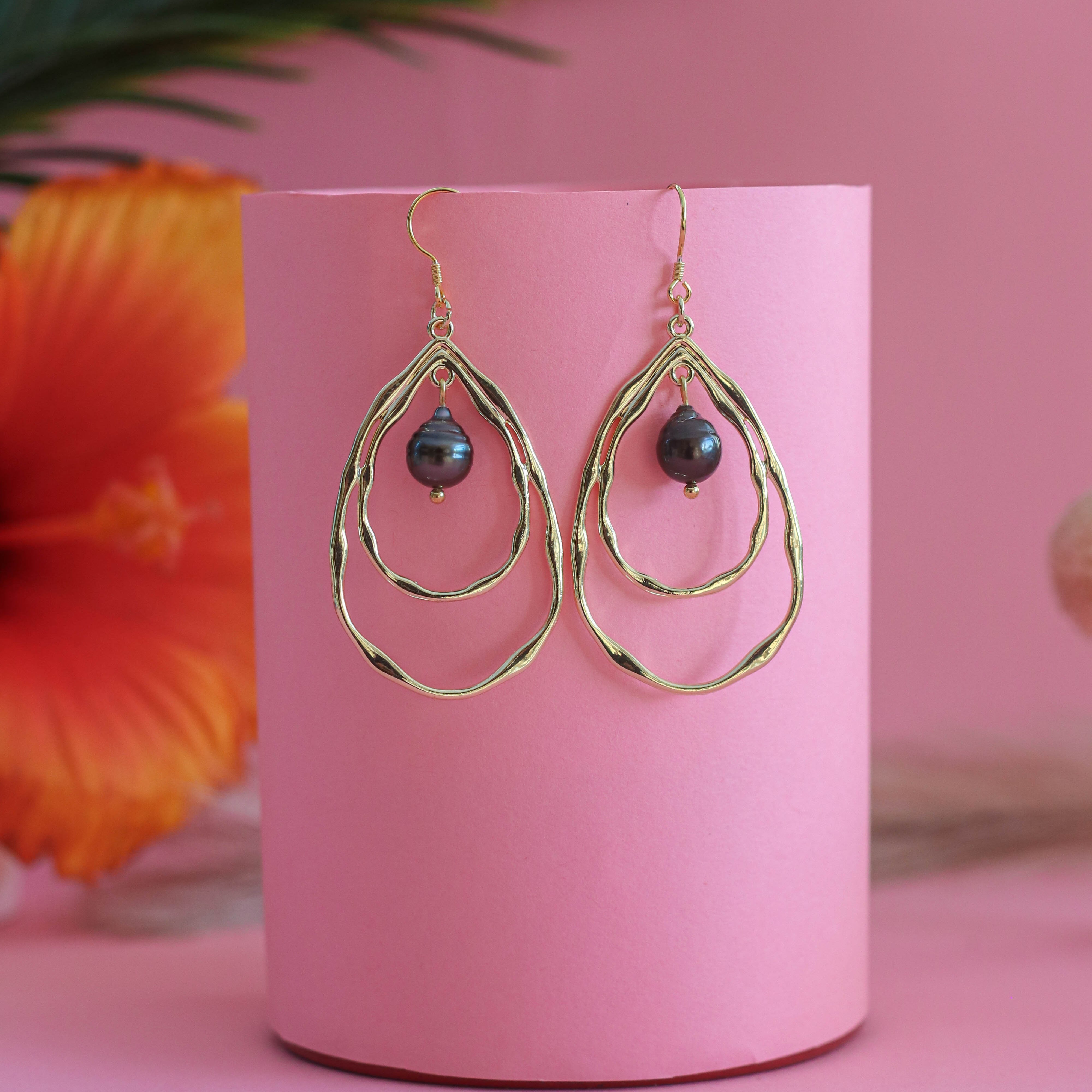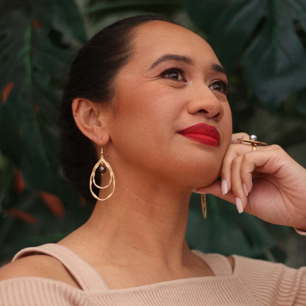 Allegra is that statement drop that moves with you. Featuring a hammered 45mm teardrop with a smaller 30mm teardrop nested inside — and of course, a pearl hanging gracefully at the center — she brings all the texture, shine, and flow you could want.