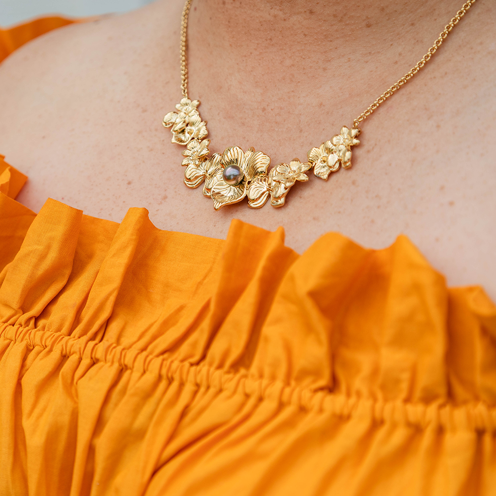 As the ultimate statement piece from our Orchid Collection, wearing this necklace ensures you stand out, capturing admiring glances at any high-profile event.