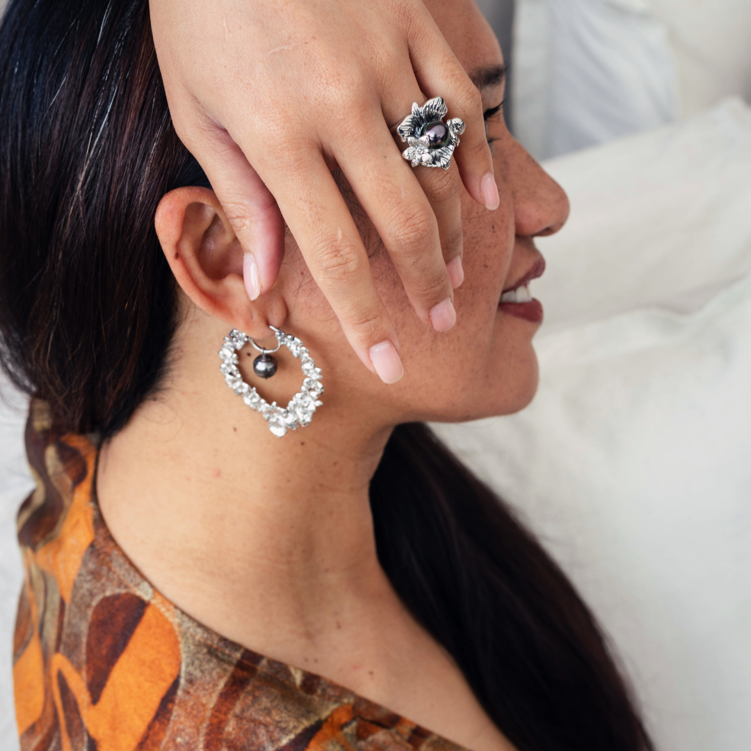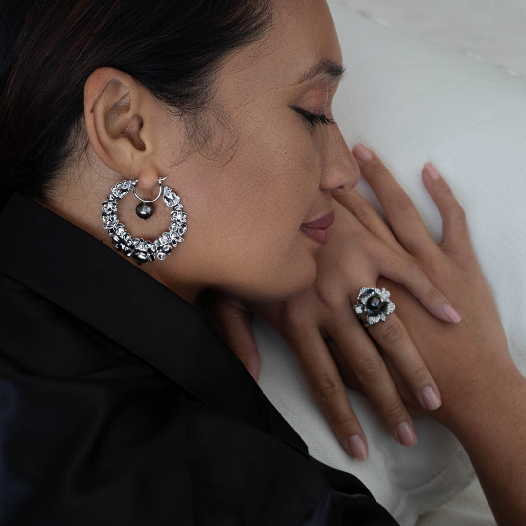 "She owns her beauty — the Leilani Hoop Earrings embody this confidence, providing everything a Pearl Queen demands: coolness, glamour, and uniqueness.
