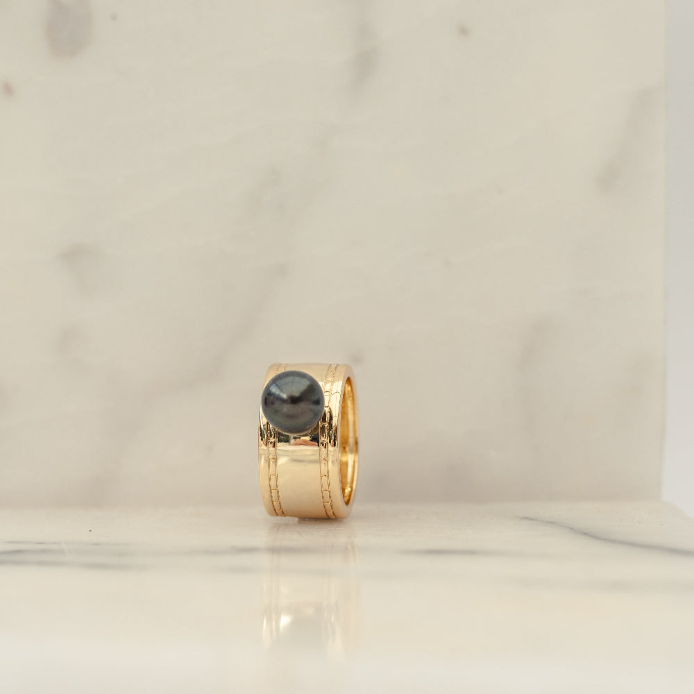 A bold gold band that means business. A Tahitian pearl set front and center, unapologetically taking up space — because it should.