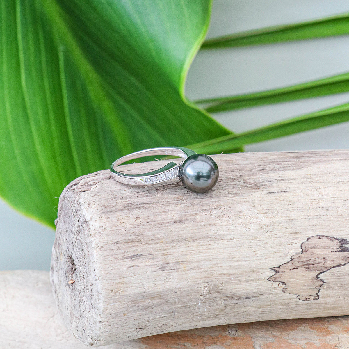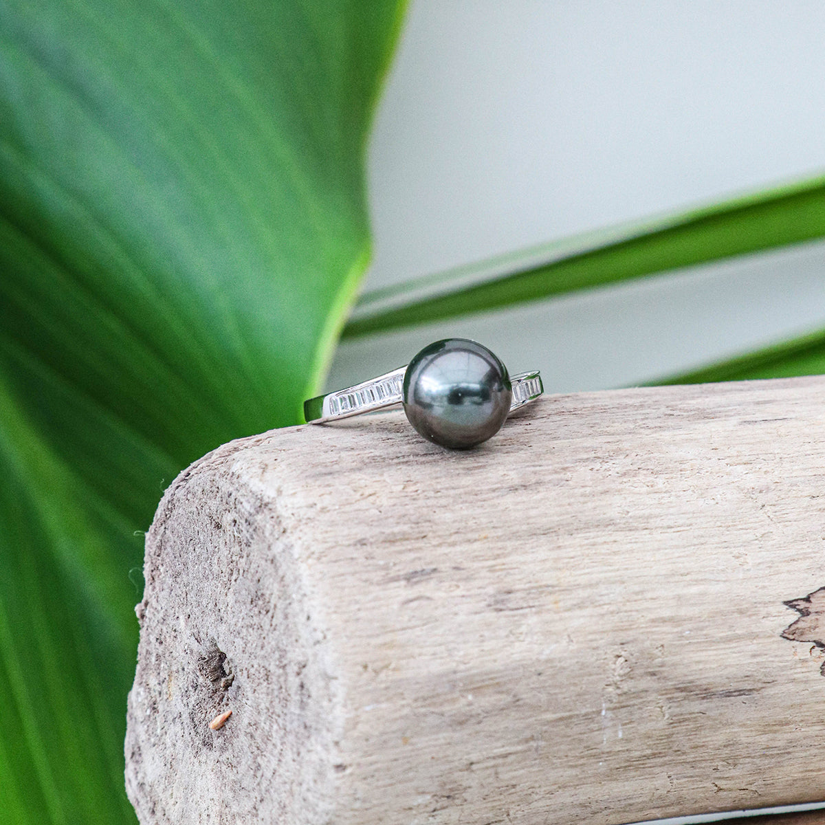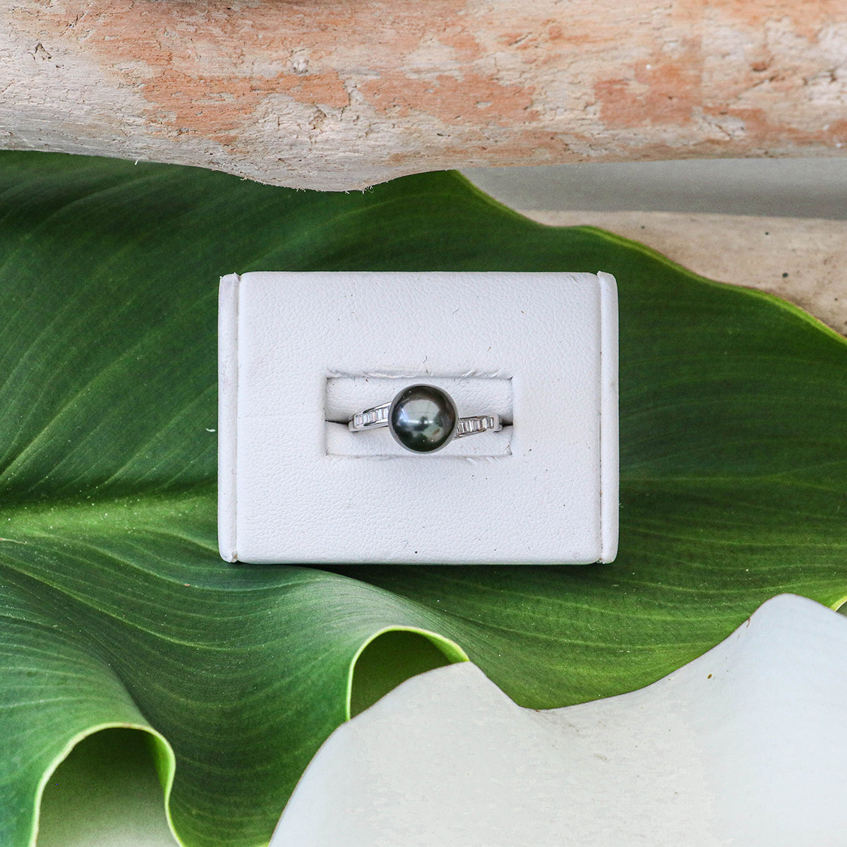 The name "Alamea" means "precious" in Hawaiian, a reflection of the timeless beauty of this stunning black pearl. Known as the “Queen of the Ocean,” the Tahitian pearl in this ring represents strength and resilience. The delicate diamond accents on each side add elegance, while the rounded, lustrous pearl at its center reminds you of the deep ocean waves — calm yet powerful. Wear this ring as a symbol of your strength, as it celebrates Pacific women who are the heart of their families and communities.
