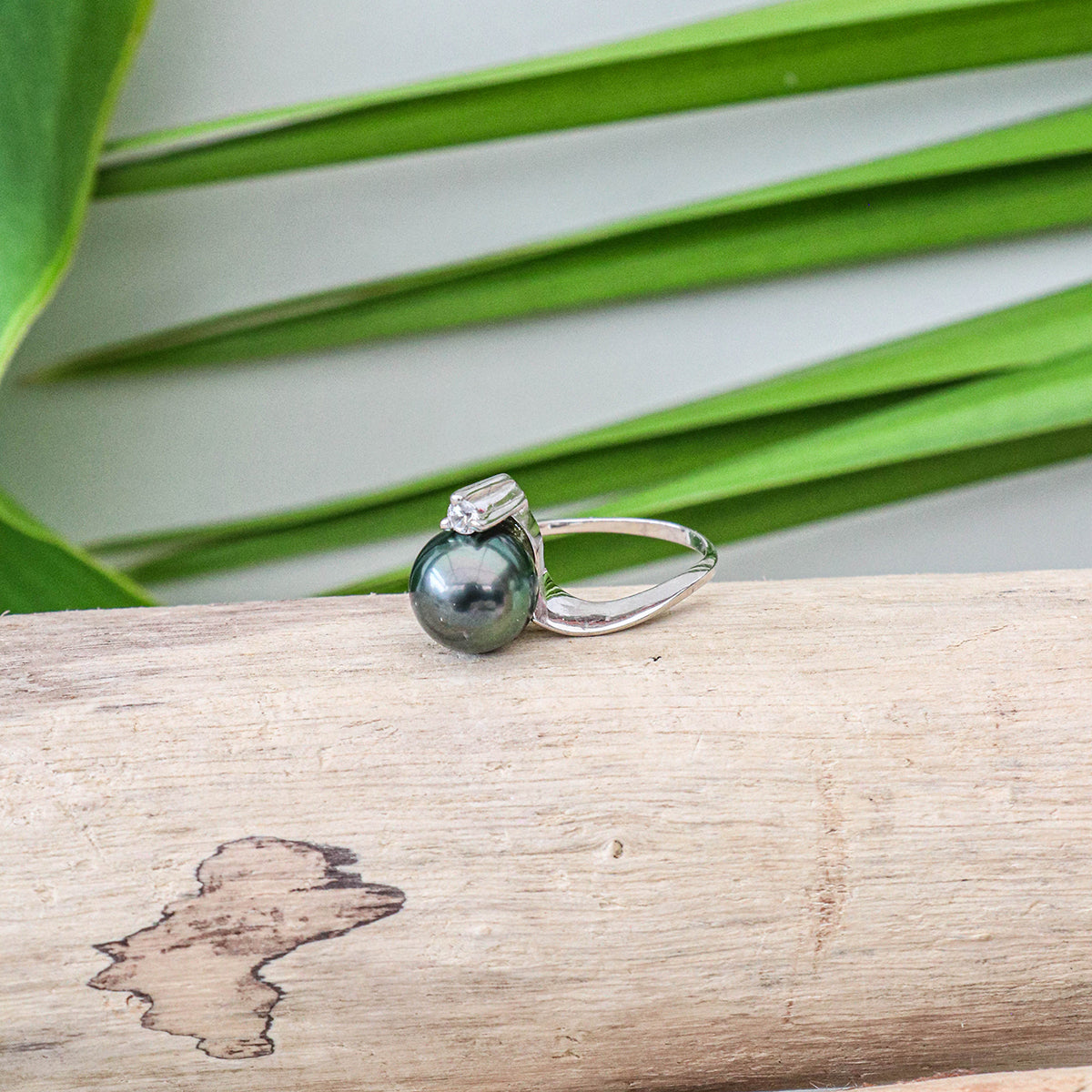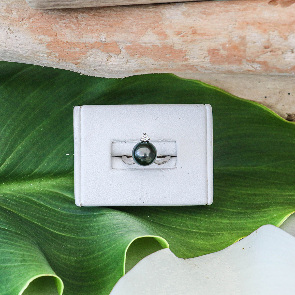 The Celina Ring is a tribute to the moonlit Pacific — serene, mysterious, and endlessly captivating. At its center rests a Tahitian pearl crowned with a delicate diamond, reflecting the union of ocean and sky. This design honors the Pacific woman: grounded like the sea, yet reaching toward the stars.