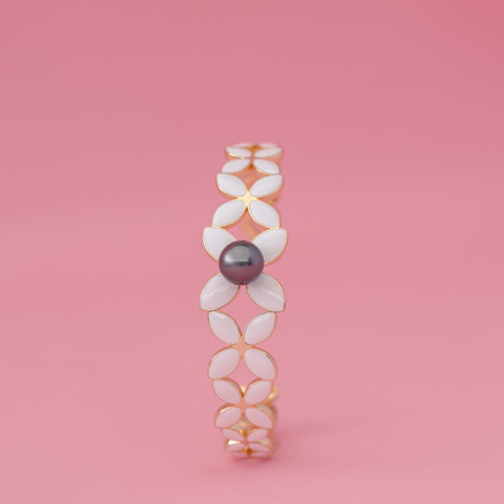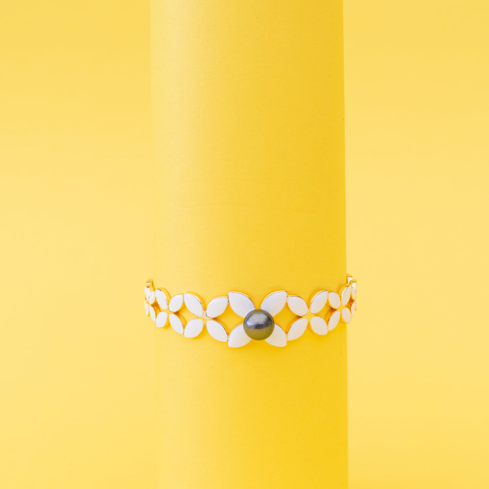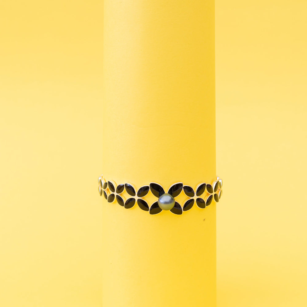 Designed as a cuff, it’s wrapped in frangipani motifs symbolising friendship, love, and connection — a gentle reminder of the people who keep you grounded no matter where life takes you.