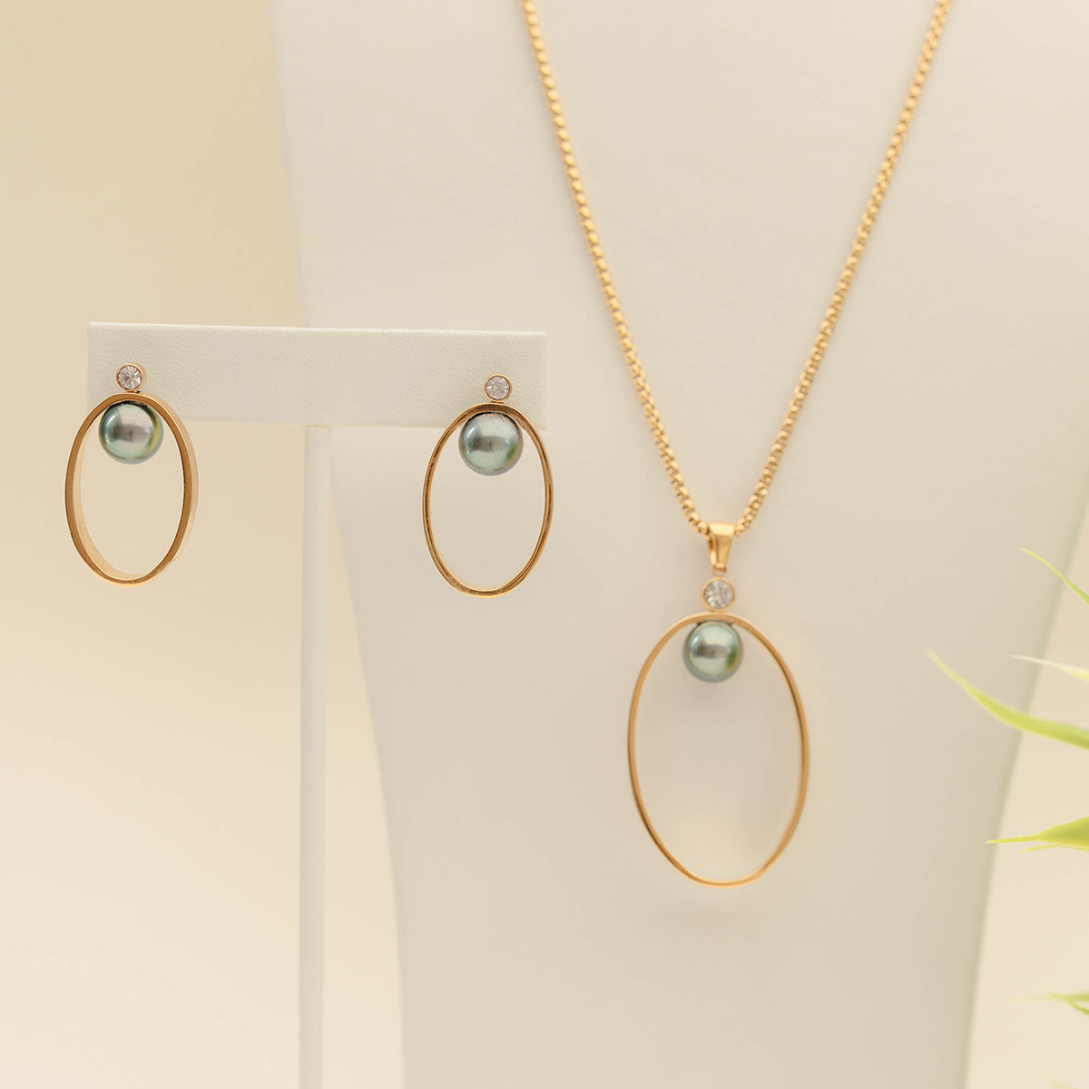 The Hera Earrings are an elegant addition to your jewellery collection. Their slender oval silhouette is decorated with a single Tahitian pearl and accented with a shimmering cubic zirconia that catches the light as you move. Style them with the matching necklace for a complete look that'll earn your compliments at any party.