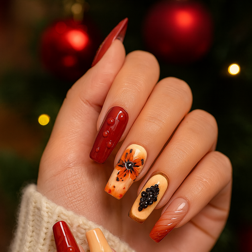 Fresh, fruity, and bursting with island flavour — our Mango & Papaya Punch handmade press-on set is a tropical dream come to life.