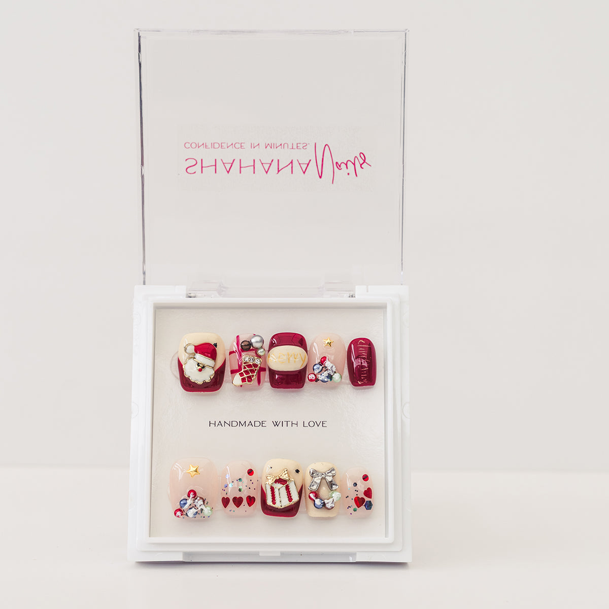 If you love going all-out for Christmas, Merry and Bright is the set for you. This red-and-white press-on collection is packed with full 3D holiday details on nearly every nail — making it one of our most joyful, festive designs ever.