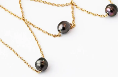 A Tahitian black pearls represent the top 20% of the pearl harvest. These pearls exhibit great beauty with a few small blemishes.