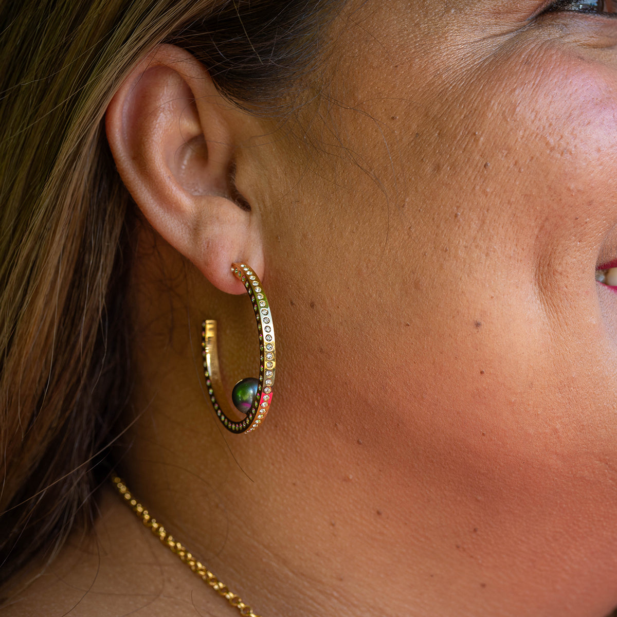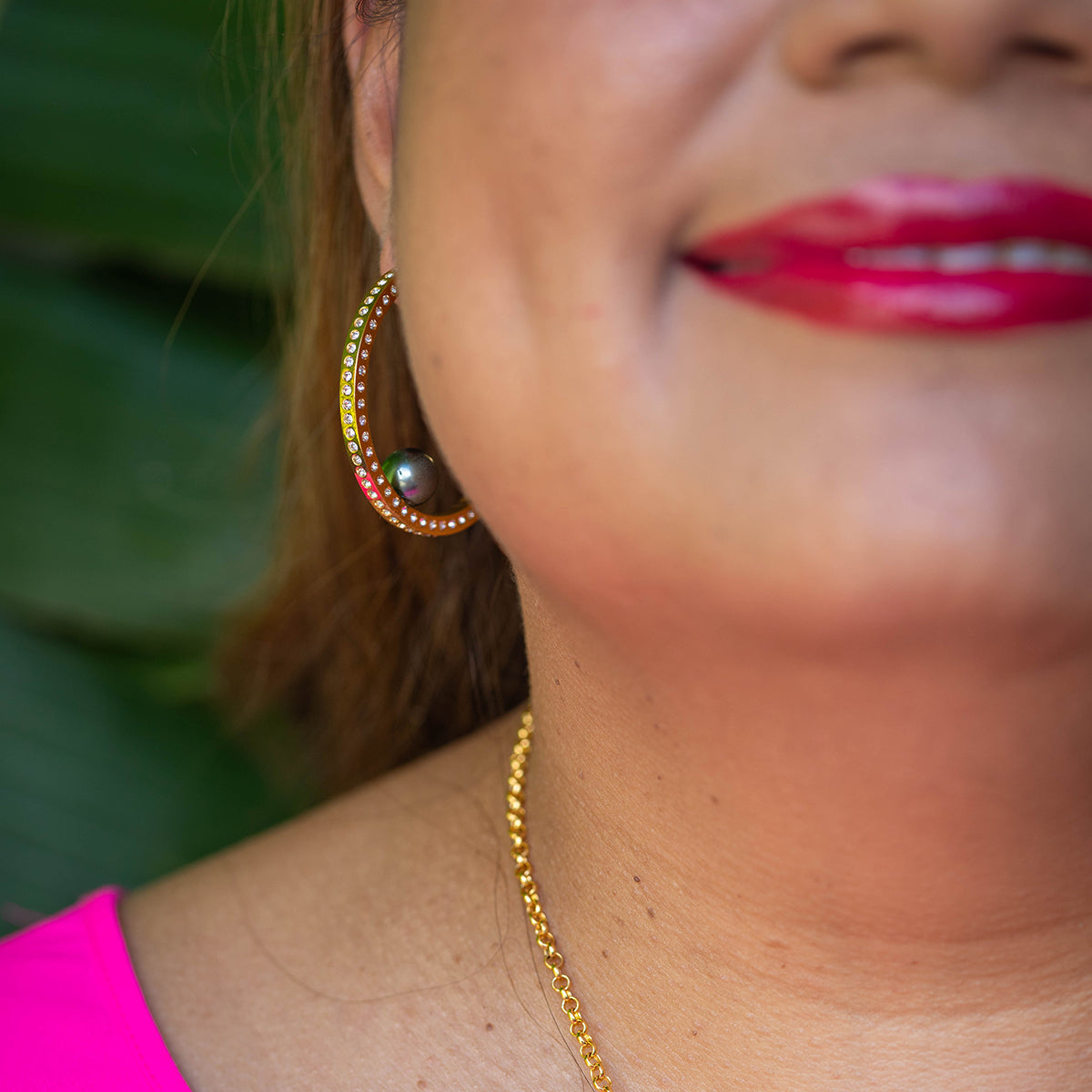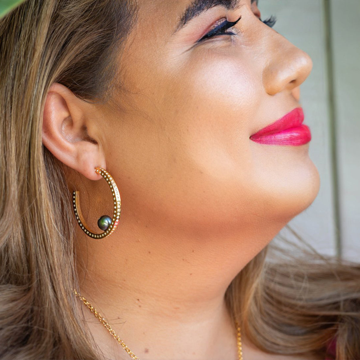 Studded with shimmering crystals and a single pearl, the Belina Half Hoops are a stunning piece to wear when you are ready to shine your light. A perfect choice for a party hostess or anyone in the spotlight.
