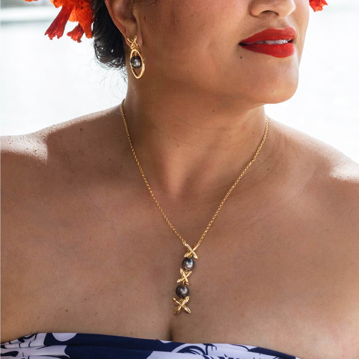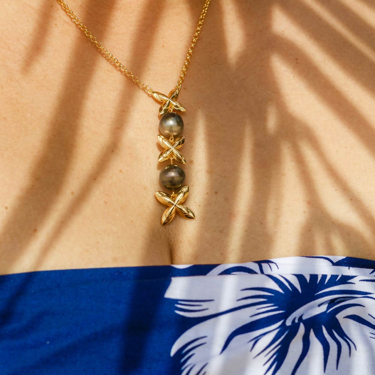 Escape the weight of the world on your shoulders with our Frida pendant. She will transport you to endless beaches and pristine white sand. Its Frangipani and pearl embellishments exude a youthful and playful vibe, while the relaxed fit of the chain makes it a great accessory to complement your sleeveless dresses or low-cut shirts. Let the Frida pendant add a touch of carefree charm to your outfit.