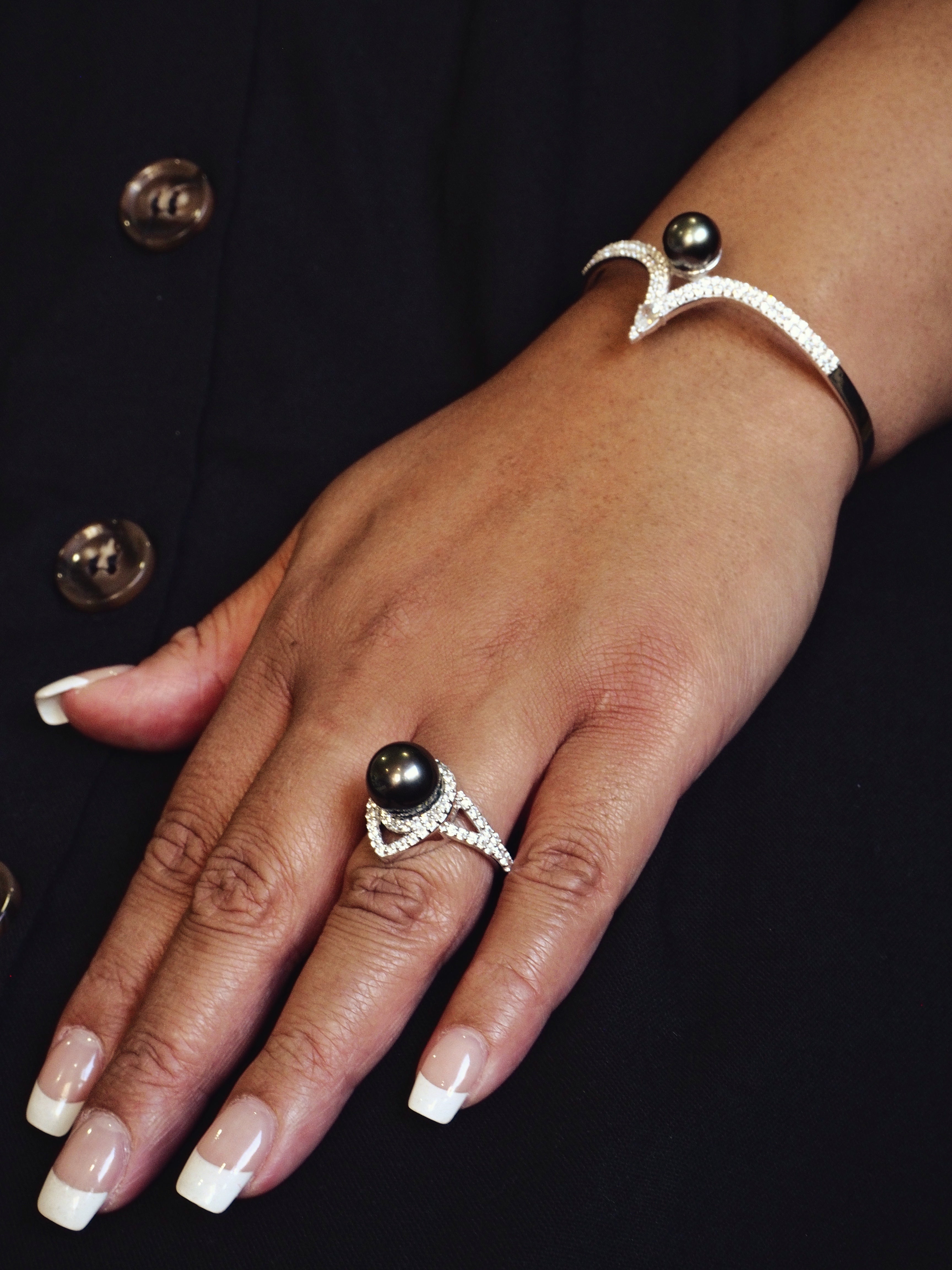 Too loud, too risky, too confident. These are all things you’ve heard about yourself before. But you’ve stayed true to who you are, and made sure that if people are going to talk, you give them a reason to! You’ve always believed that if you’re going to bother putting on a ring in the mornings, you better be able to see it from a mile away. And in this case, you’ll love our Isla ring. She is a bold pear-shaped 9mm Tahitian pearl ring covered in cubic zirconias from top to bottom. Goes perfectly with a fresh manicure and gorgeous handbag.