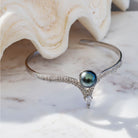 Every day is an occasion in your books. You’ve learned that life is short, and now you celebrate while you can. You drink from the nice glasses, set the table for your dinner, and no matter what you’re wearing, you make it fabulous with over the top jewellery. Our Mina bangle is a unique pearl with a modern V shape that gives a romantic appearance while the 10 mm Tahitian black pearl is romantic and regal.