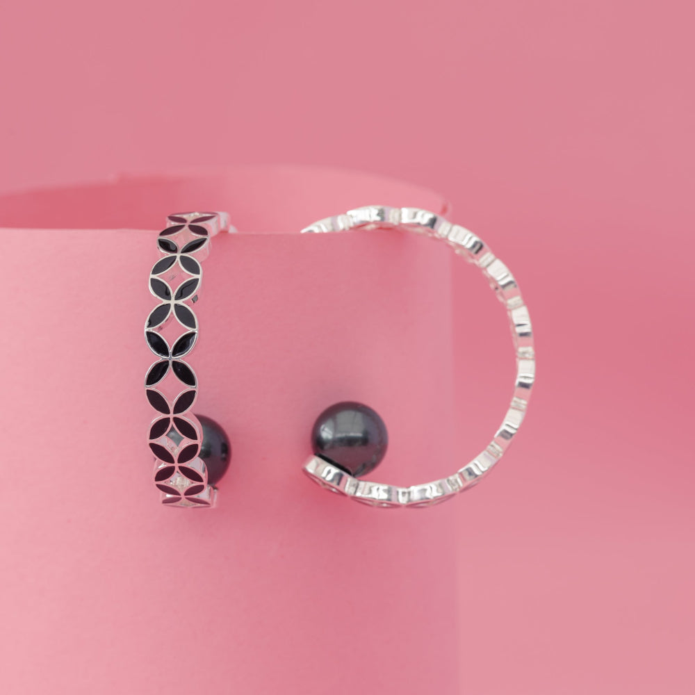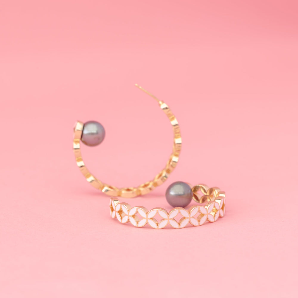 Perfect for everyday moments — coffee runs before work, lunch dates with friends, or a Saturday market stroll in the sun. These half-hoop beauties feature detailed flower and wave motifs all around, celebrating island femininity in every curve.